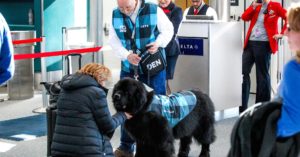 Airlines are cracking down on emotional support animals, but airports are embracing them.
